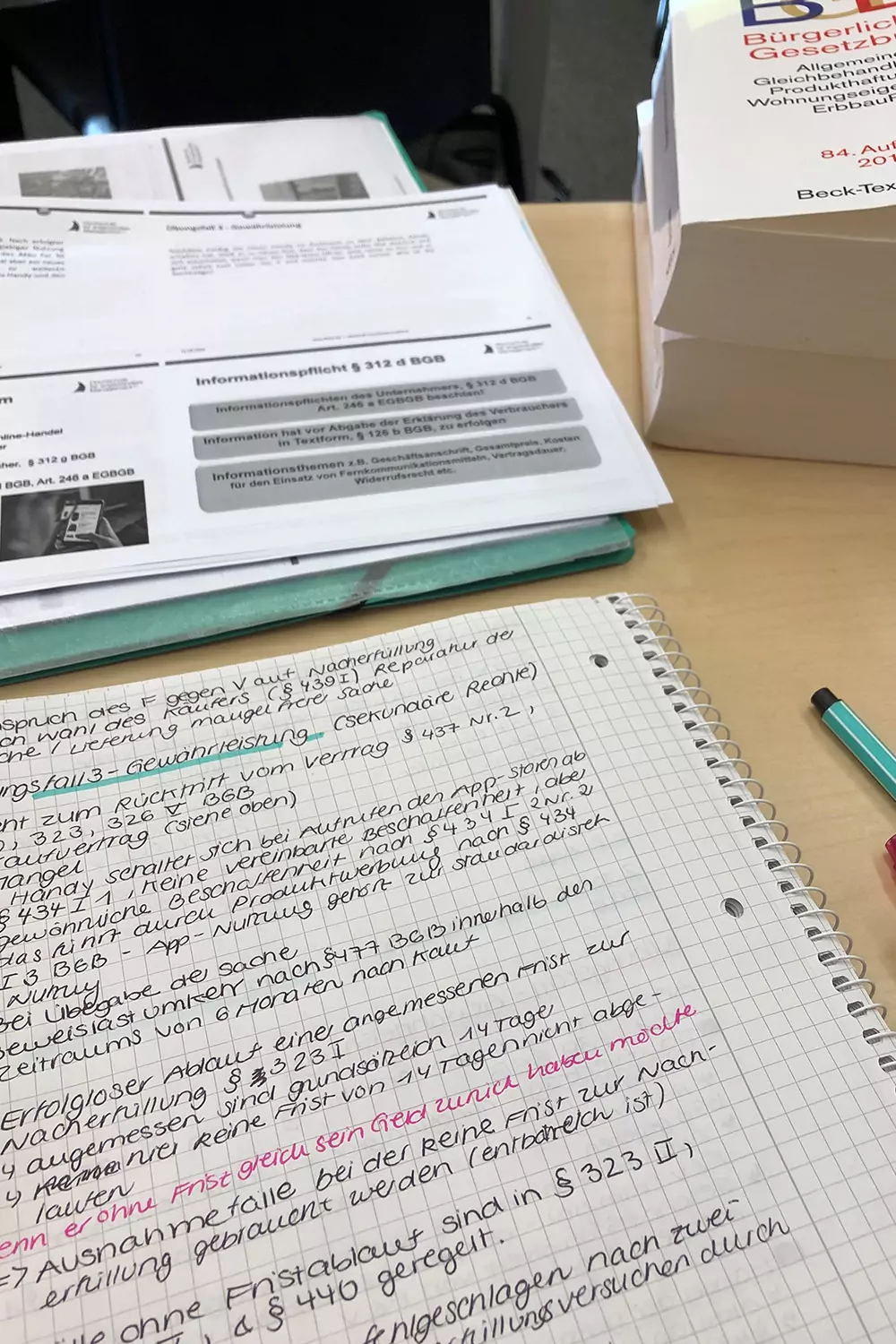 Das dritte von unseren fünf Modulen in diesem Semester war Zivil-, Unternehmens- und Arbeitsrecht. An verschiedenen Rechtsfälle zu jedem Themengebiet haben wir die Grundlagen aus den verschiedenen Bereichen kennengelernt. Dabei waren das BGB und ArbG ständige Begleiter! Jeder Fall wurde Schritt für Schritt analysiert und mit Hilfe der verschiedener Paragraphen bestätigt oder widerlegt. Auch wenn sich das Fach etwas ziehen kann und man echt konzentriert dabei bleiben muss, sind die Fälle nicht ohne und es ist überraschend, wer nun Recht bekommt und wer nicht.