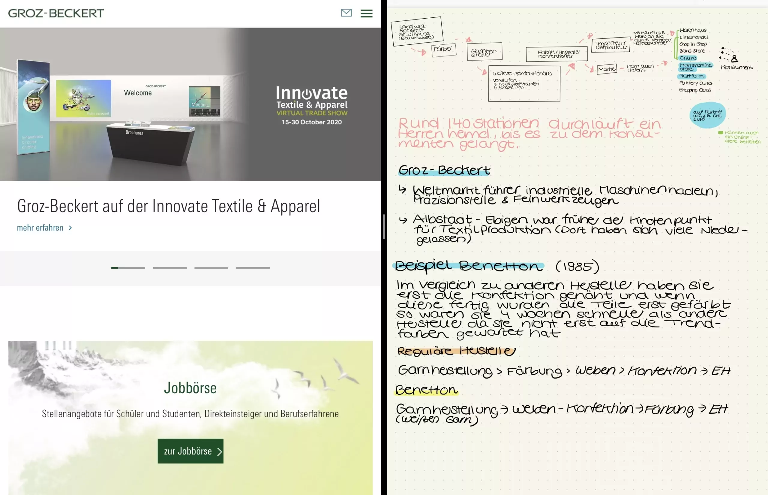 Bei dem anderen Tool wurden wir in Gruppen eingeteilt und sollten eine Mindmap zum Thema *Marke* erstellen. Jeder konnte gleichzeitig daran arbeiten und sah in Echtzeit die Änderungen der anderen Teilnehmer. Das war ziemlich cool! Um auch verbal miteinander zu kommunizieren, unterhielten wir uns über den Gruppenchat in Teams. Die Ergebnisse wurden anschließend gemeinsam besprochen.